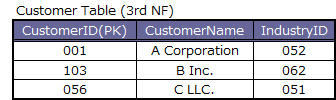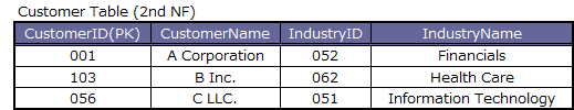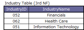 To remove the transitive dependency, I divided them into Customer table and Industry table. Then, all of the tables became in third normal form.