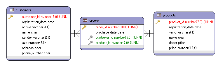 First of all, I defined the following tables: customers, orders, and products in one-to-many relationships.