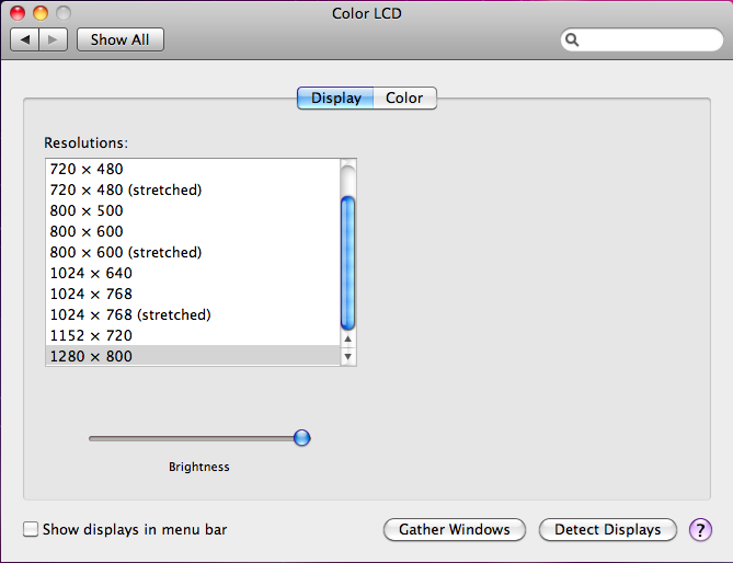 Aspect Ratio = 1280 : 800 = 8 : 5