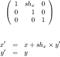 Given points p1={10,10} and p2={30,10}, show the transformation matrix and resulting points for a shear in the x direction. You can pick any shear value in the range or -100 to 100 (for convenience pick an Integer value)